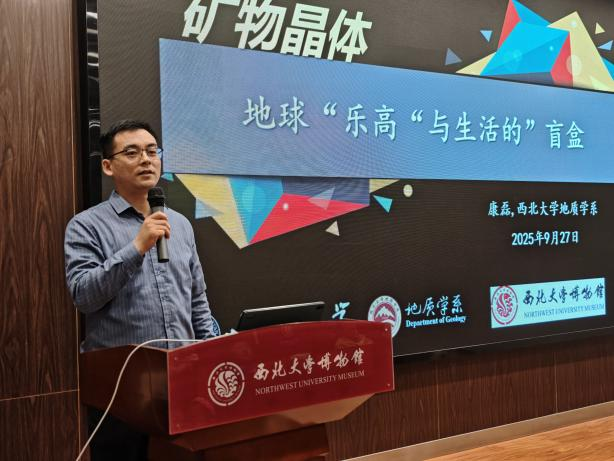9月27日下午,作为全国科普月的重点收官活动,西北大学博物馆“科普大讲堂”公益讲座如期开讲。西北大学地质学系康磊副教授以“矿物晶体——地球‘乐高’和生活‘盲盒’”为主题,用通俗比喻解读矿物结构,结合馆藏矿物标本展示,从矿物的形成原理、科学价值延伸到生活中的矿物应用,生动诠释了“地球‘乐高’”的组合逻辑与“生活‘盲盒’”的惊喜之处。讲座中,康磊副教授还分享了地质学系团队在矿物研究中的科研故事,穿插互动提问环节,让现场观众在轻松氛围中收获地质知识,进一步拉近科学与大众的距离。
